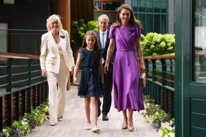 Princess Charlotte, dressed in a blue polka-dot dress with her signature braided half-up hairstyle, accompanied her mother along with her aunt, Pippa Middleton. The trio was seen enjoying themselves throughout the event. Charlotte, who is becoming more involved in royal activities, appeared focused and engaged as she watched the final between Spain’s Carlos Alcaraz and Serbia’s Novak Djokovic — a repeat of the previous year’s final.